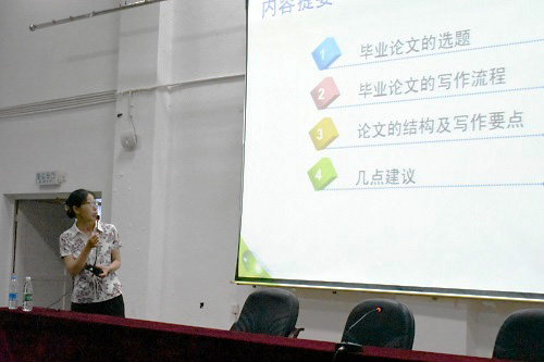 云博士在会上做了专题讲座《机械工业本科毕业论文写作指导》,通过PPT展示,对本科论文的基本要求、论文基本格式内容和撰写论文的技巧等方面进行了具体细致的介绍。让与会学生对毕业论文有了更直接的认识和了解。