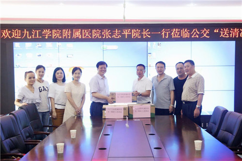7月24日,张志平院长、张南华书记、贾宗林副院长、欧阳庆雯副院长和体检中心同志一行,冒着酷暑,前往中原市公交公司、湖口县中原萍钢钢铁有限公司、中原上港集团、中原中船消防设备有限公司、中原海螺水泥厂、中原九景高速管理处、5727厂等十余家单位,为一线职工送去了防暑降温药品。